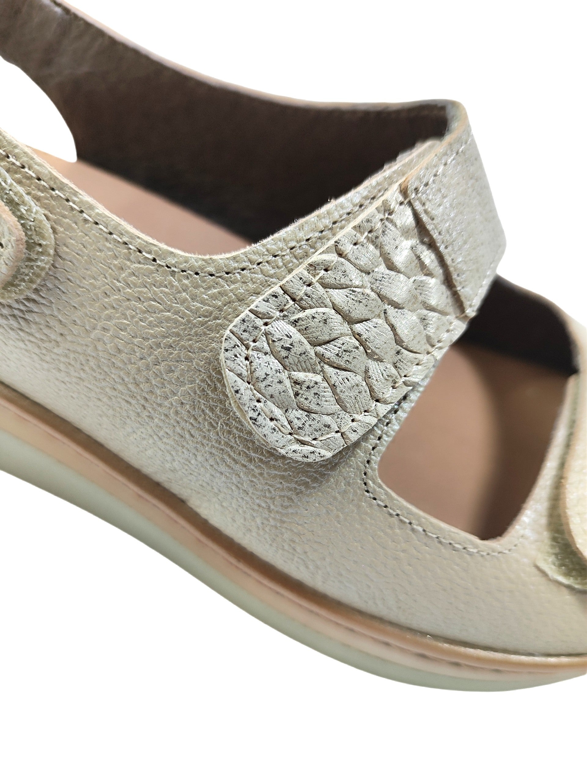Diseñadas bajo nuestra filosofía de "Comodidad Invisible, Estilo Visible", estas sandalias cuentan con un sistema de doble velcro que te permite un ajuste milimétrico y seguro, adaptándose a tu pie sin presiones. Su diseño abierto de puntera y talón garantiza la máxima frescura mientras vas de compras por el centro o disfrutas de un paseo bajo el sol.