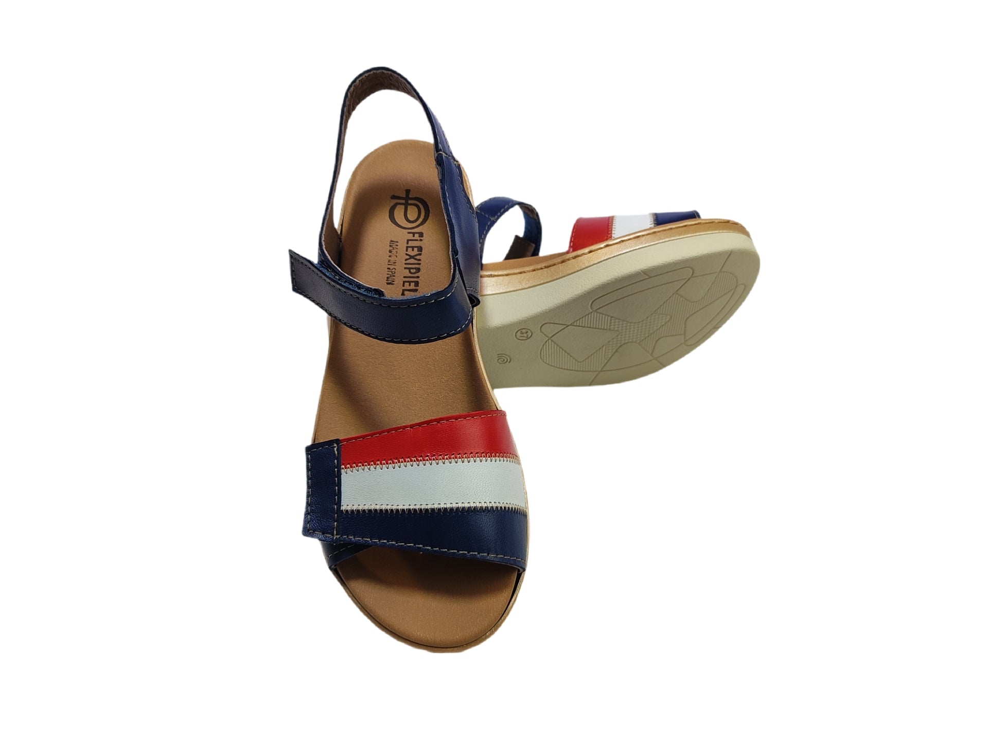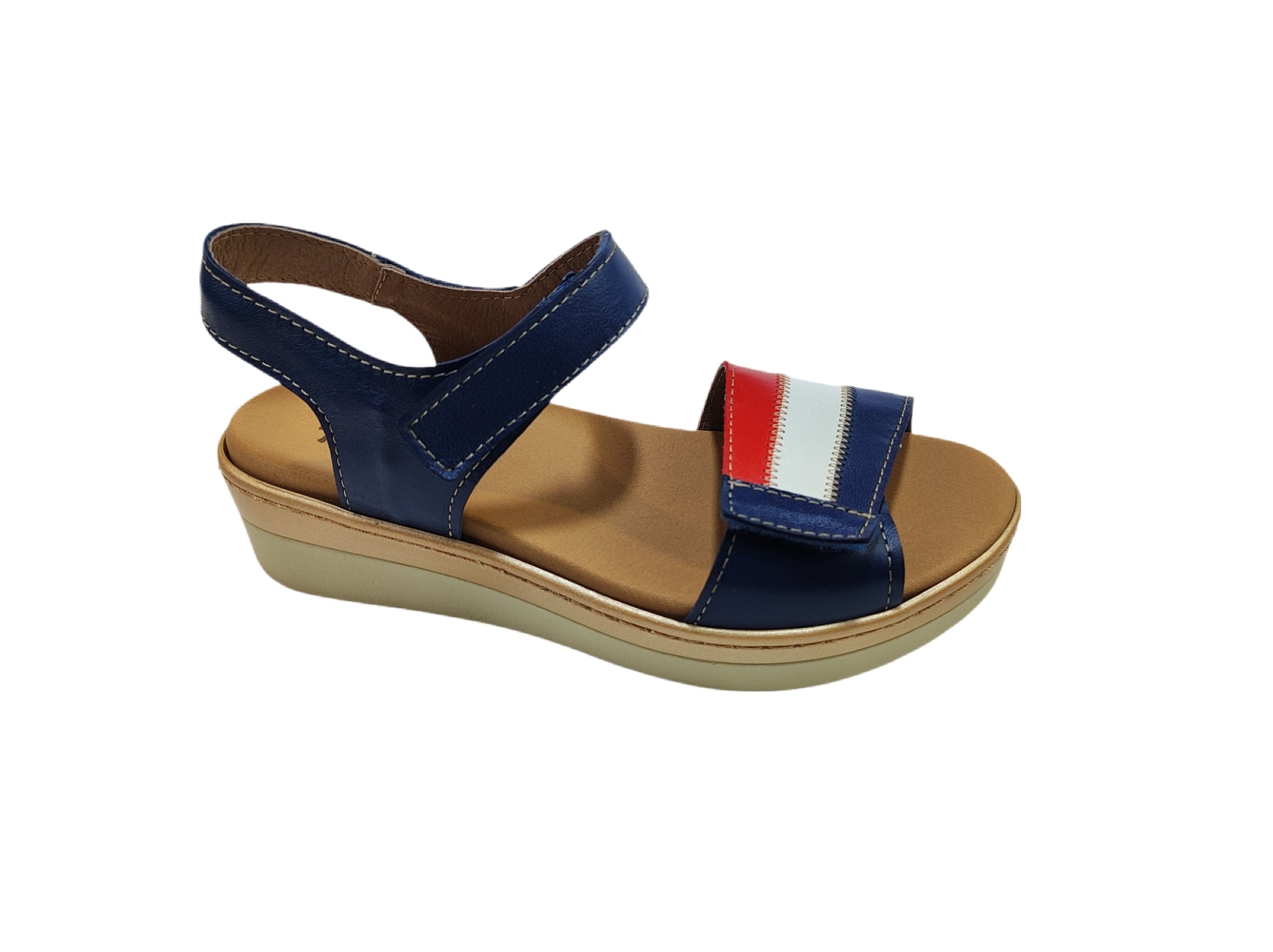 El modelo RIVIERA no es una sandalia más; es tu pasaporte al estilo sin esfuerzo. Su diseño tricolor (azul, rojo y blanco) transforma al instante un pantalón blanco o unos vaqueros en un look sofisticado.