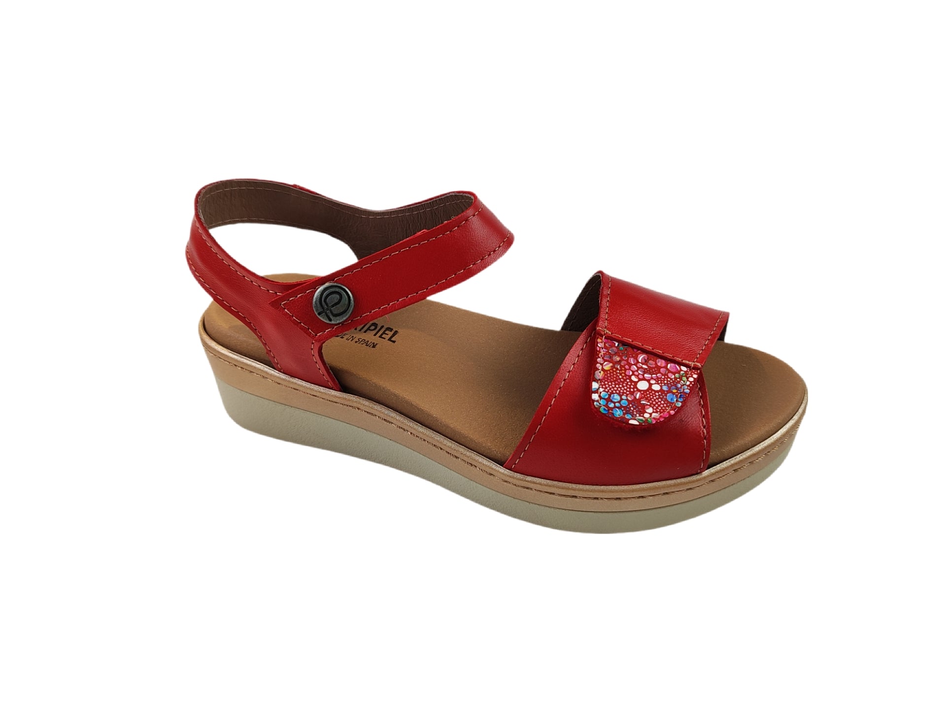 Hemos diseñado esta sandalia para ser el centro de todas las miradas: un rojo vibrante con un detalle multicolor artesanal en la pala que le da ese aire de boutique exclusiva. Es el antídoto perfecto contra los días grises.